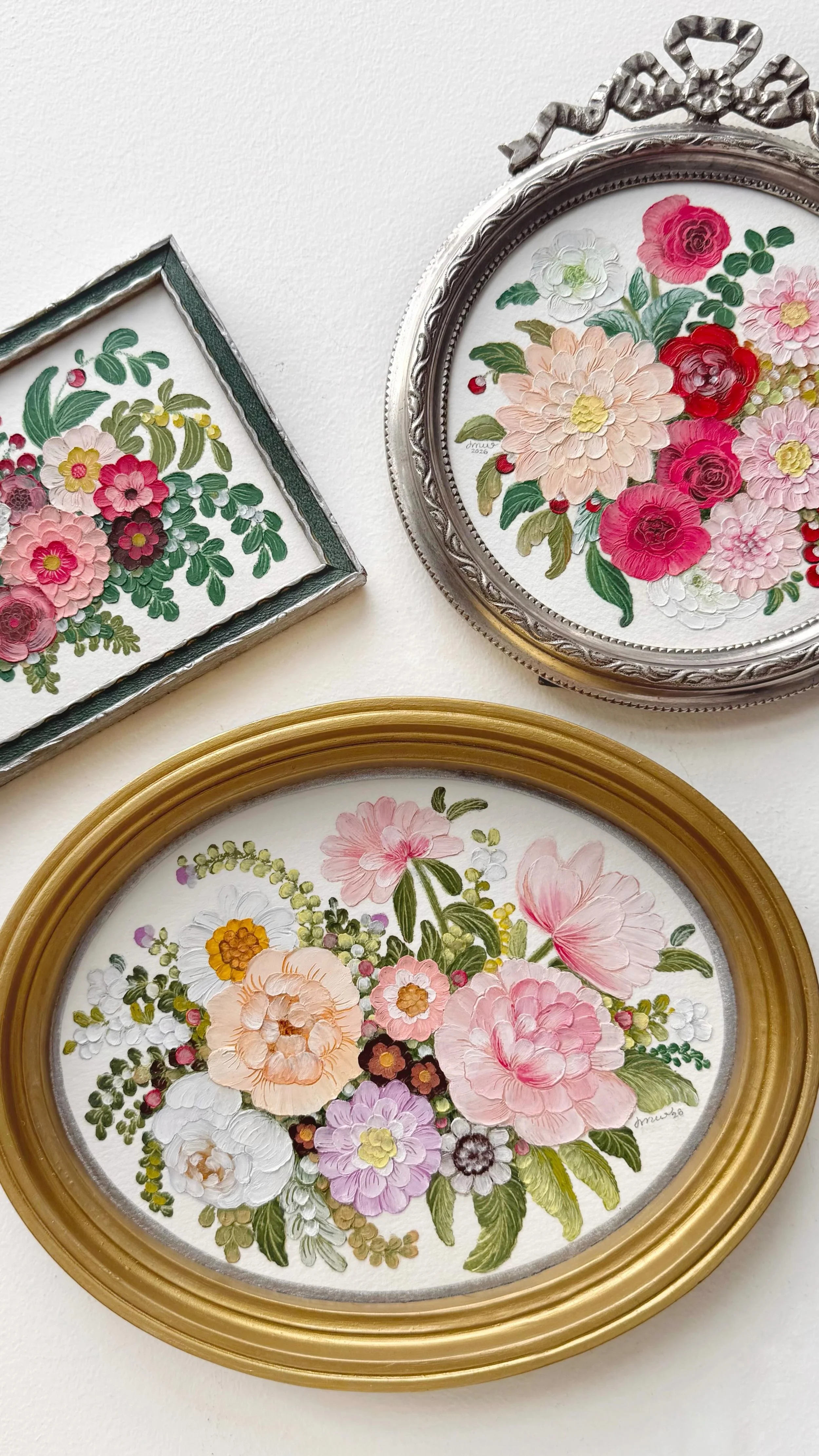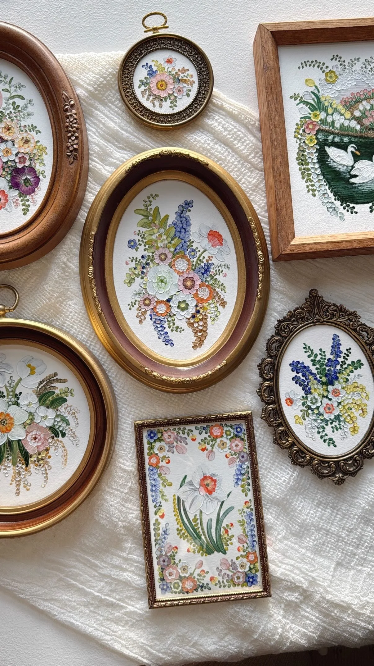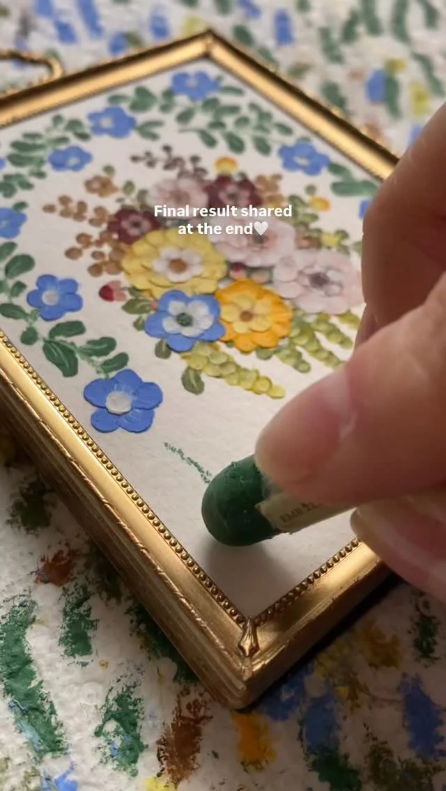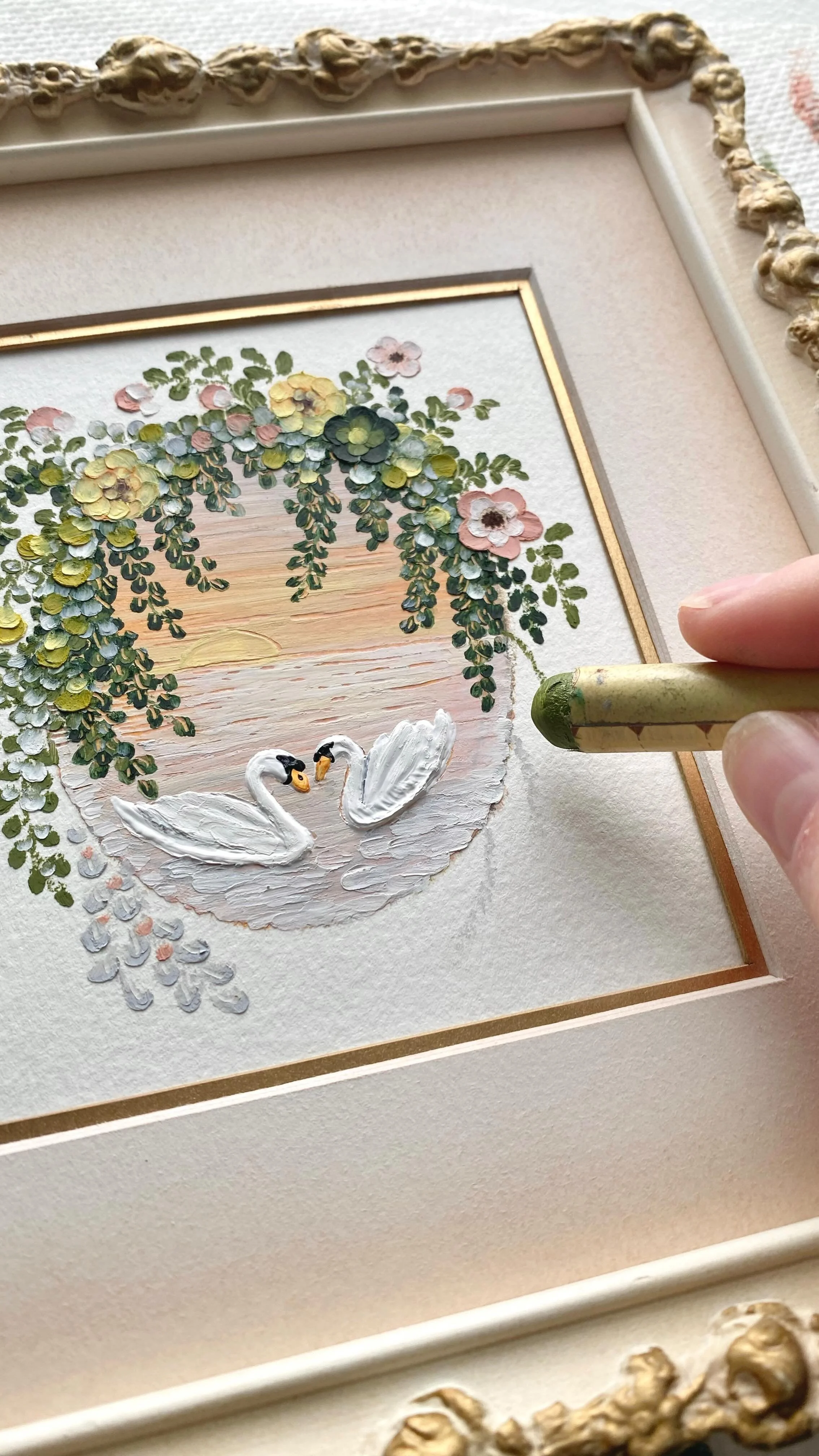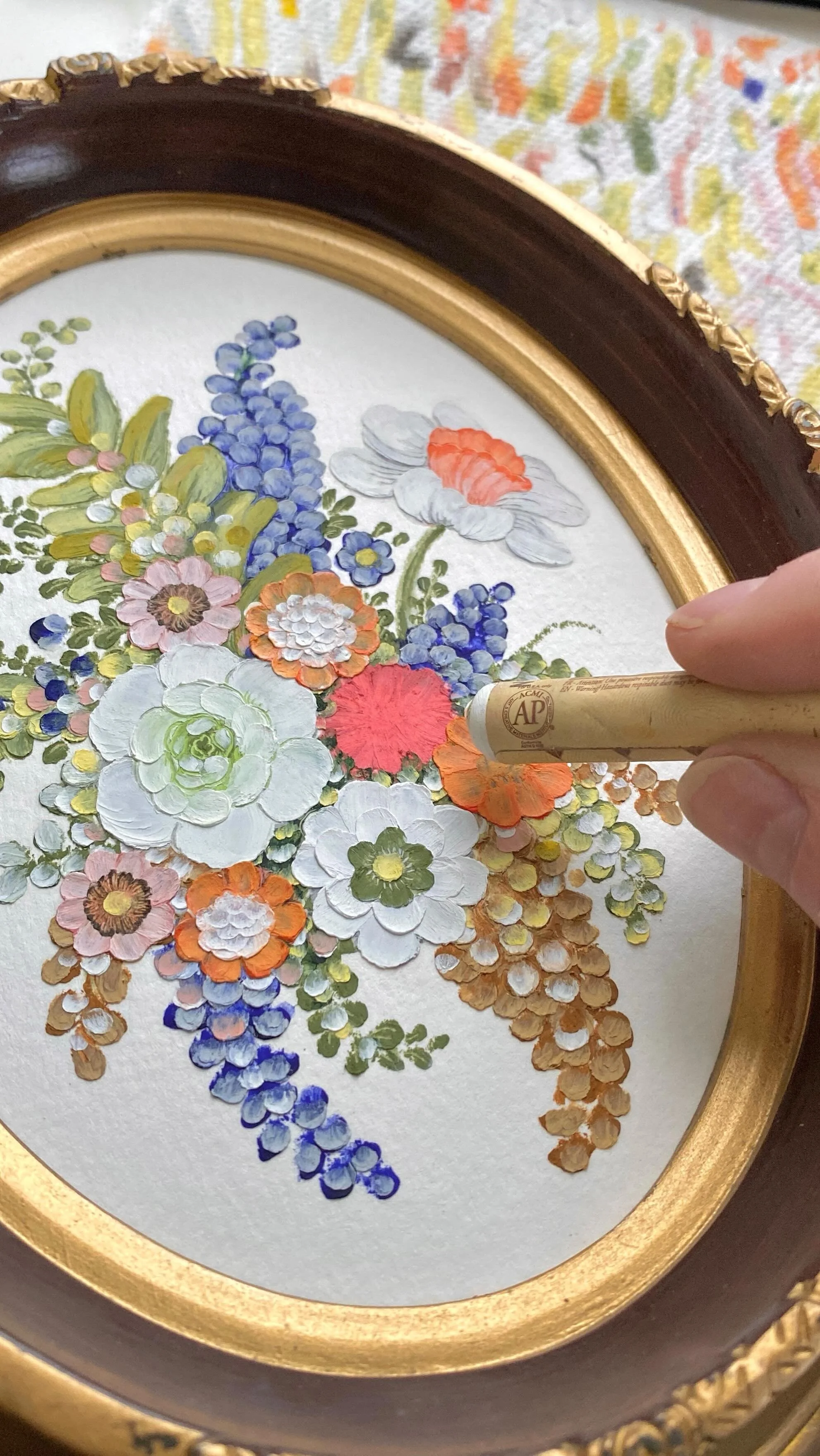 framed oil pastel & watercolor paintings