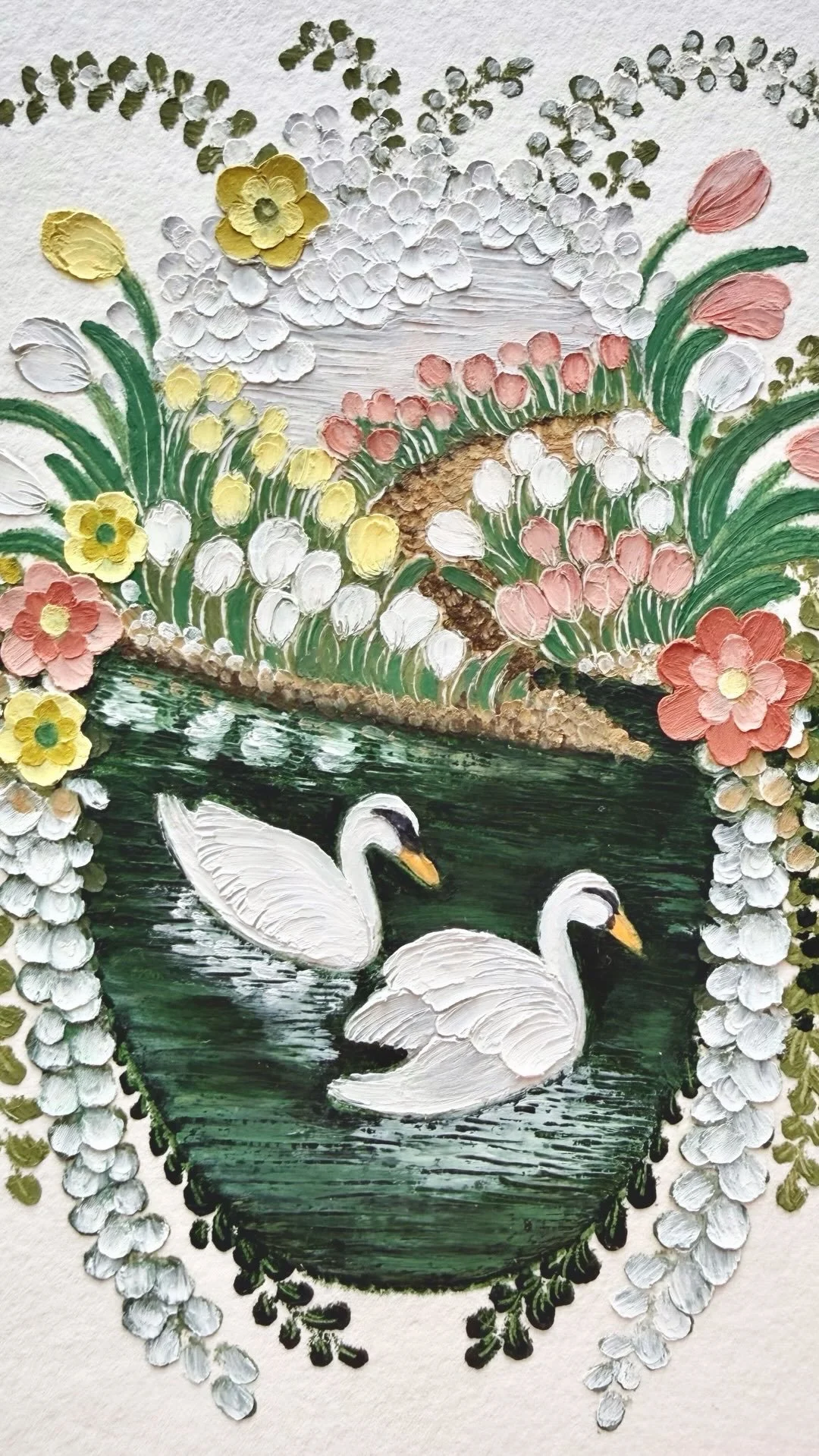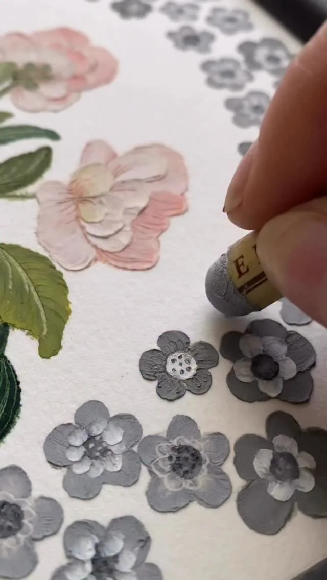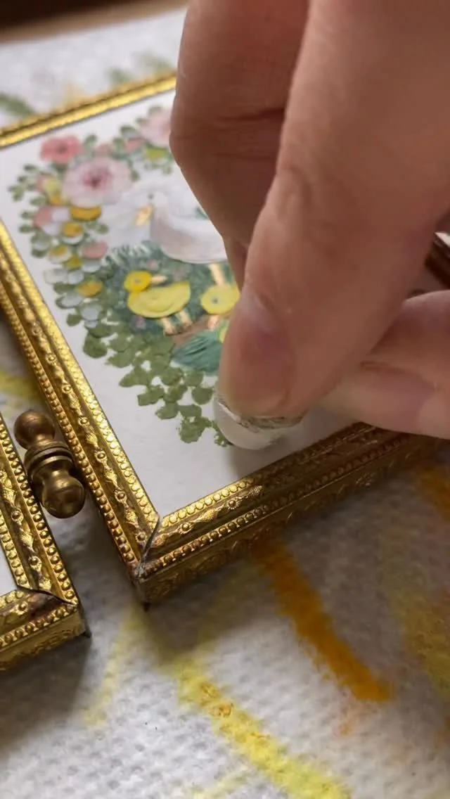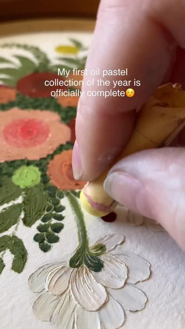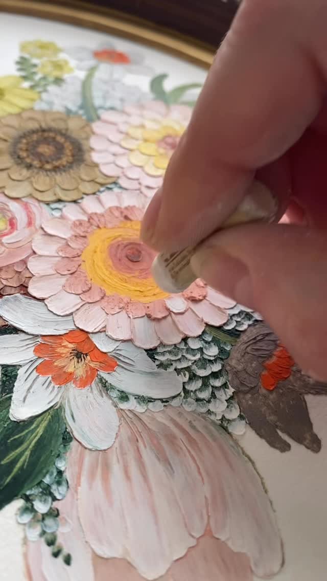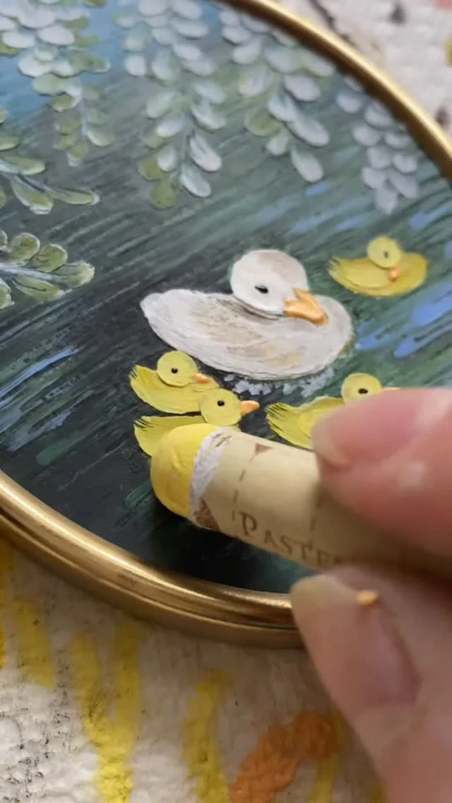 framed oil pastel & watercolor paintings