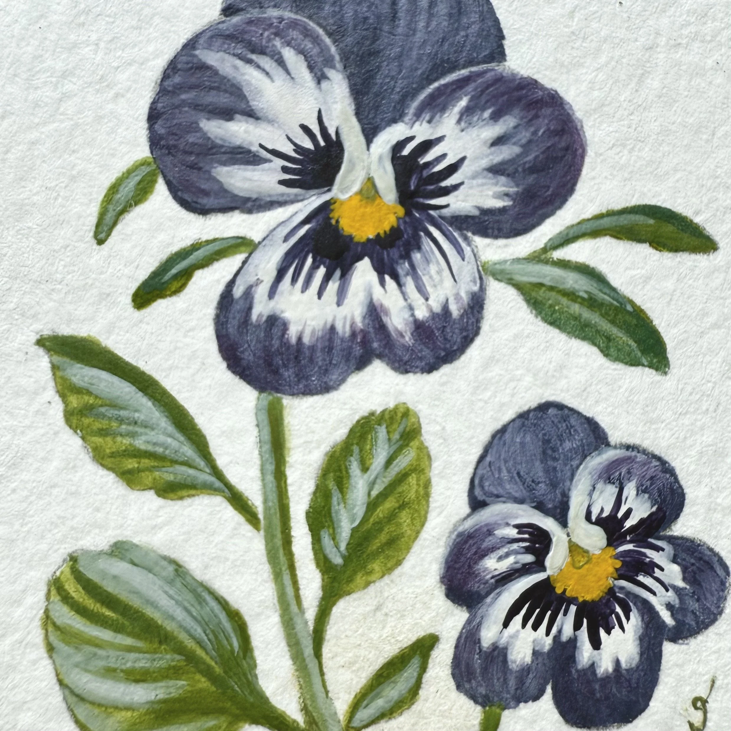 Original watercolor painting displayed in a vintage tabletop frame (included in purchase). Frame size 3.25×4.25”. Title of piece & artist signature handwritten on reverse. Initials hand-written on front.
